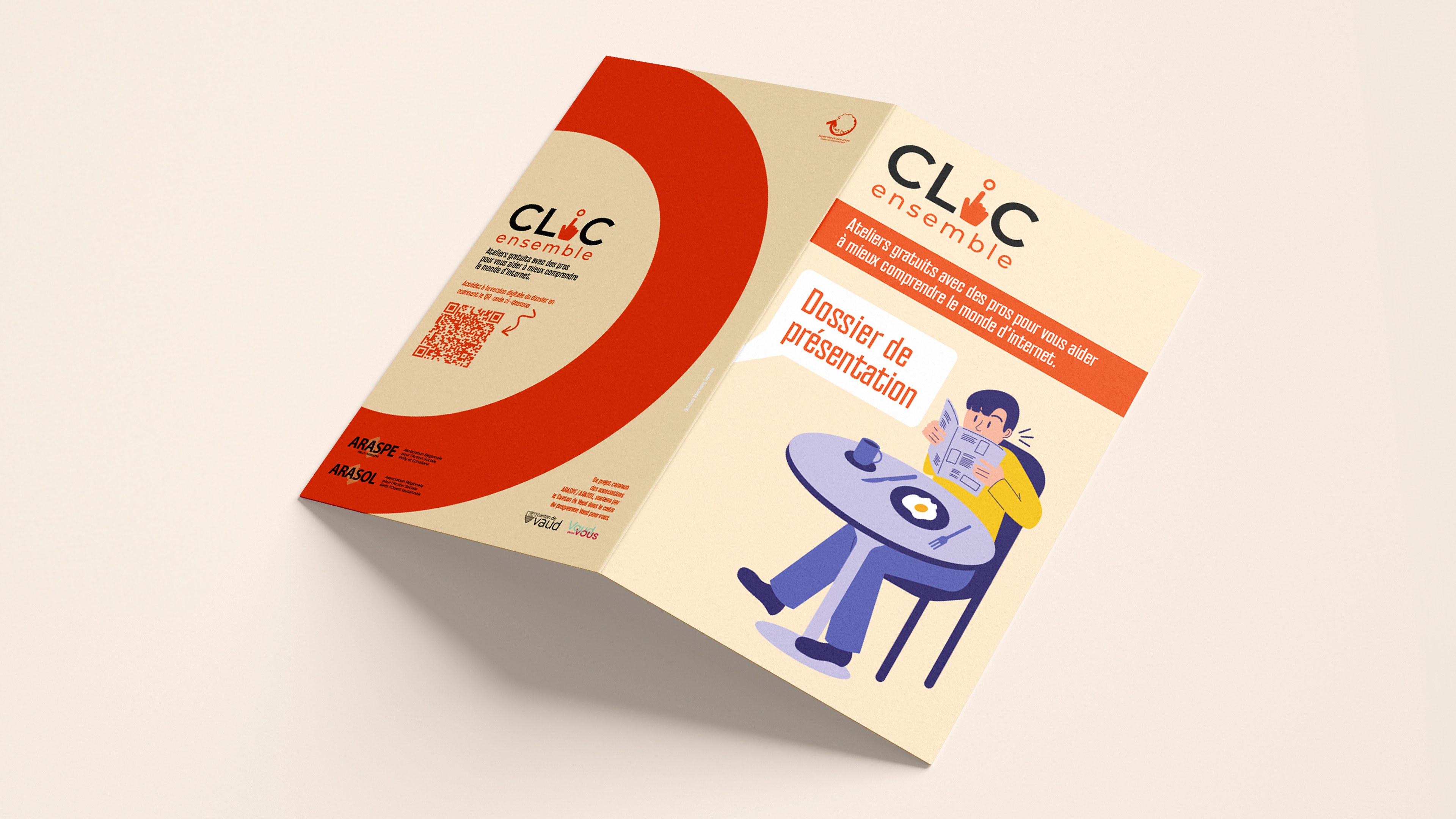 Participation à la création et au développement d'un projet réalisé lors de mon stage chez Sabina Advertising, pour le compte des associations ARASPE/ARASOL. Ce projet, soutenu par le Canton de Vaud dans le cadre du programme 'Vaud pour vous', propose des ateliers informatiques destinés aux personnes touchées par la fracture numérique.